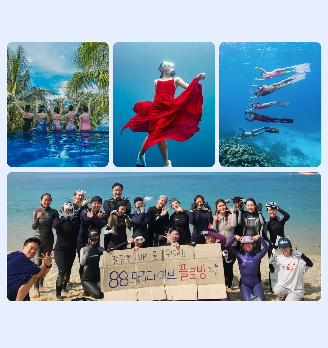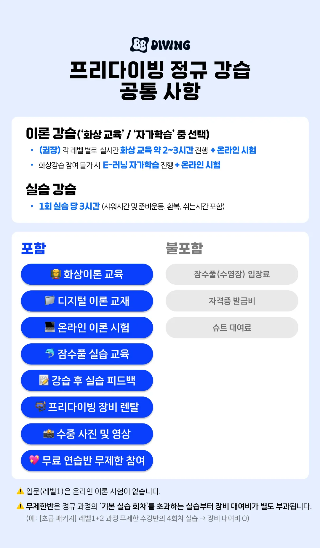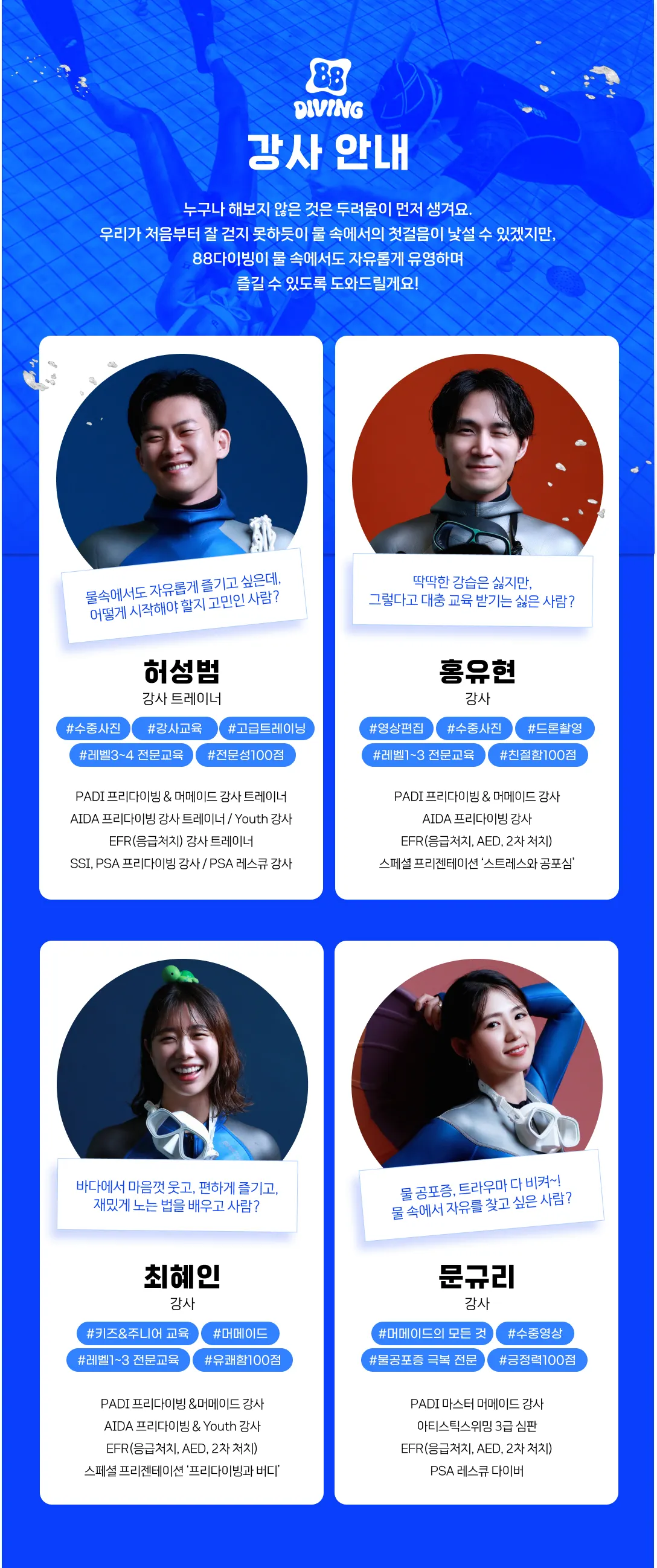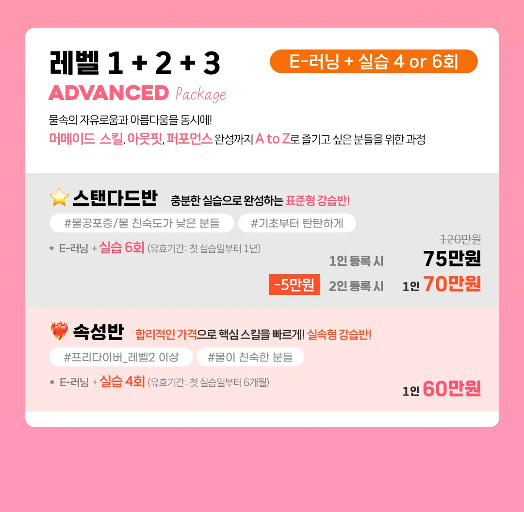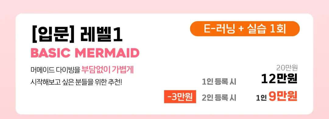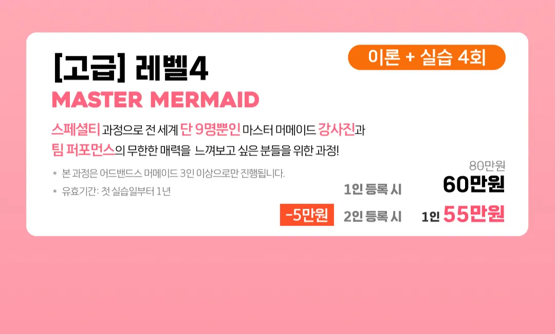 프리다이빙 & 머메이드 강사 과정 및 EFR은 별도 문의주세요.