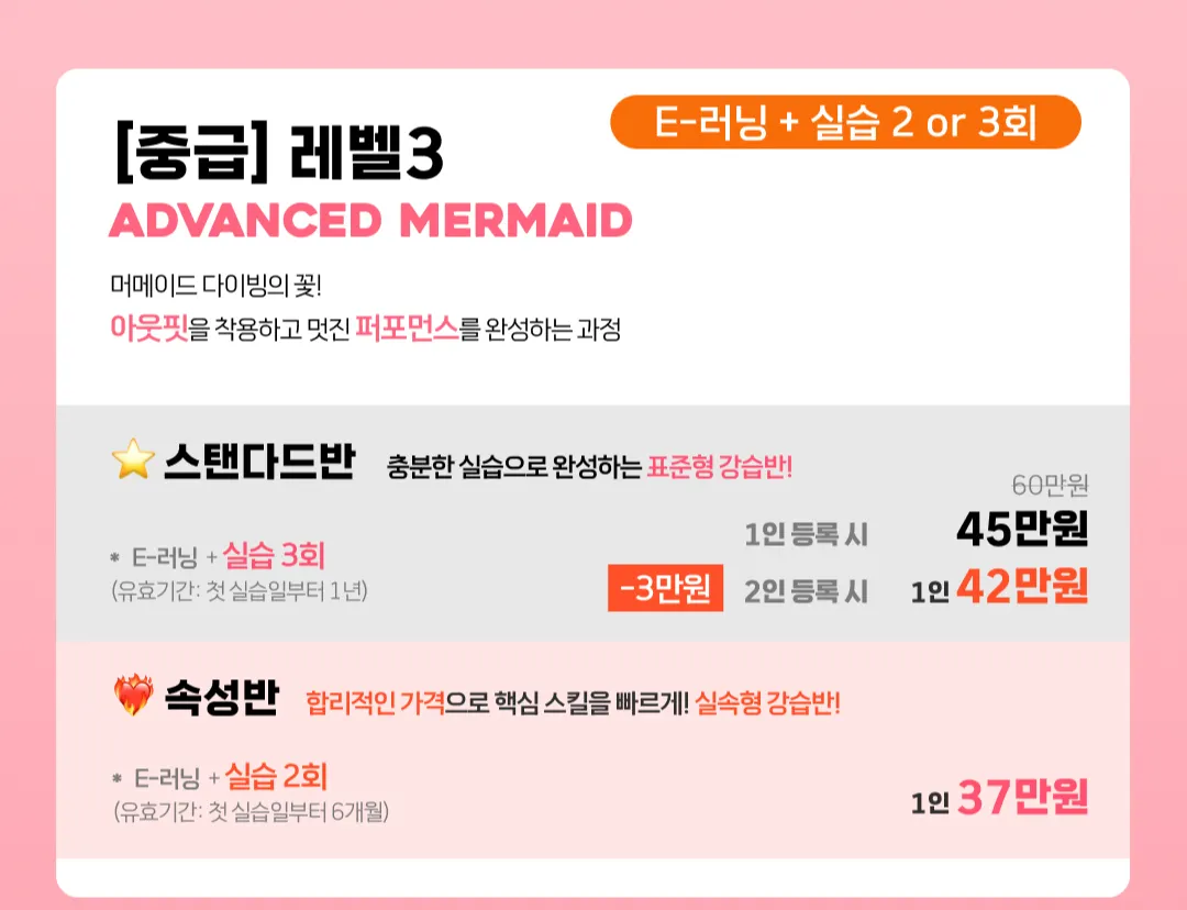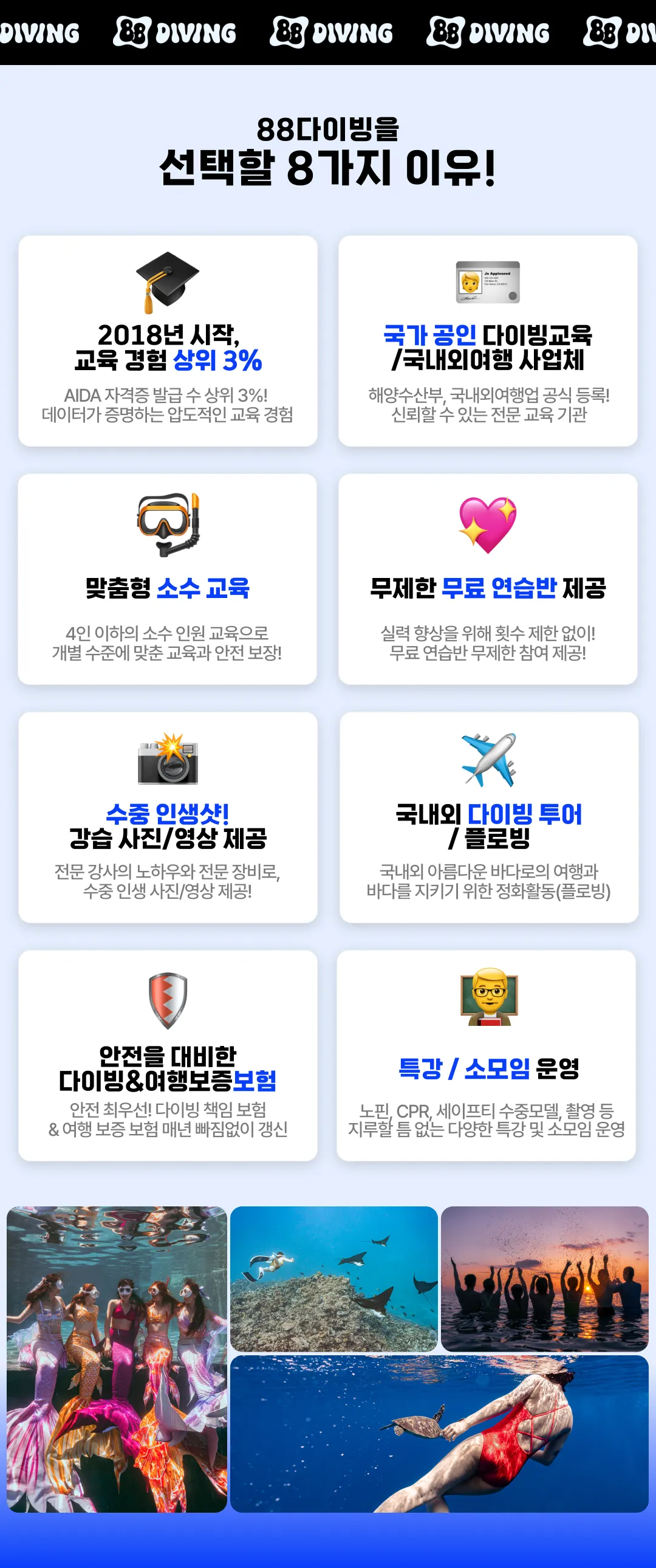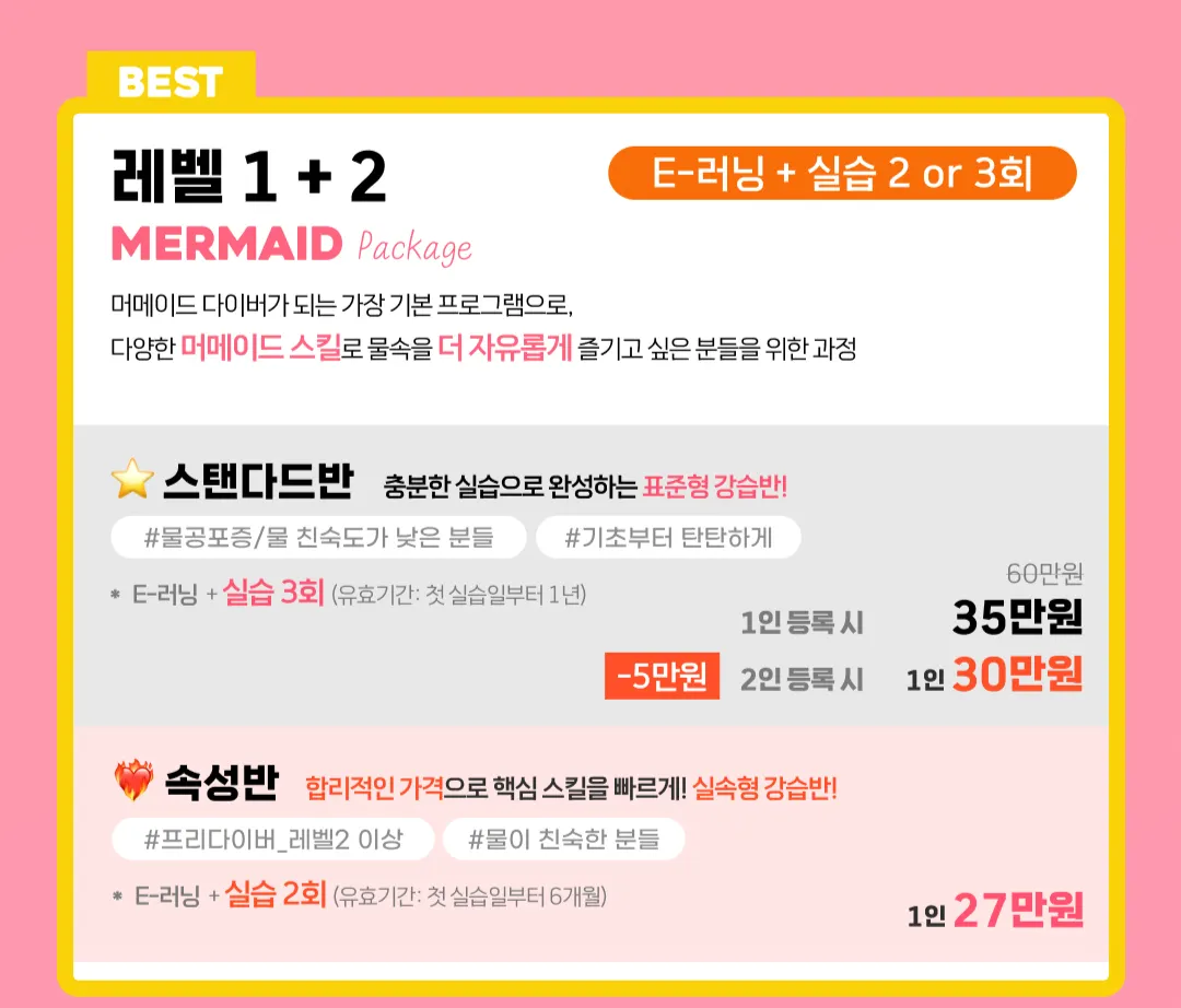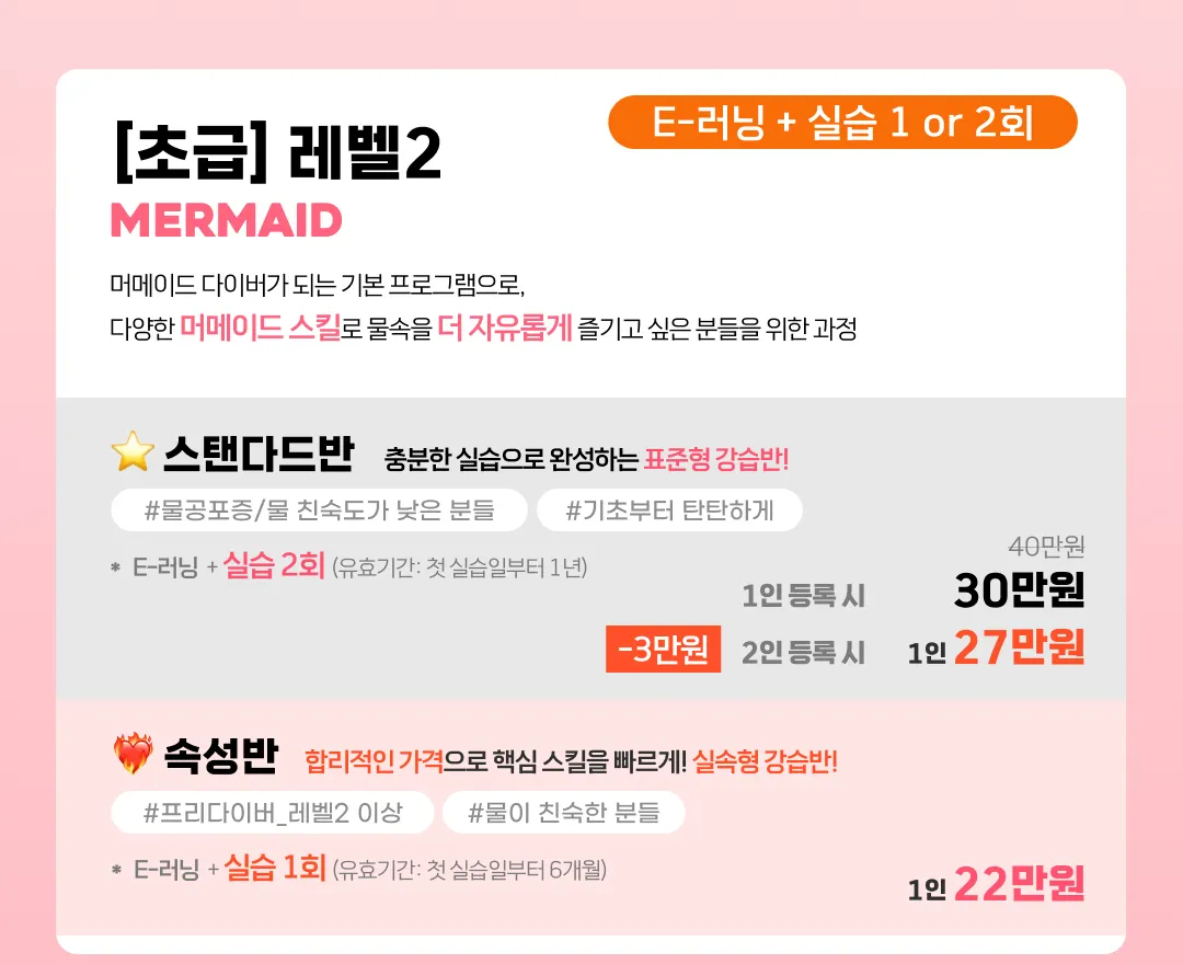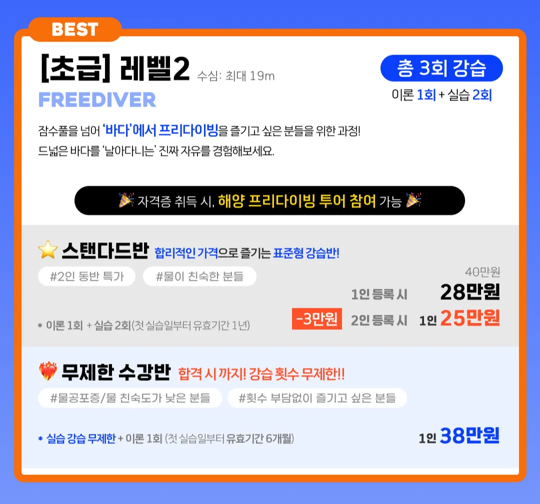 프리다이빙 & 머메이드 강사 과정 및 EFR은 별도 문의주세요.