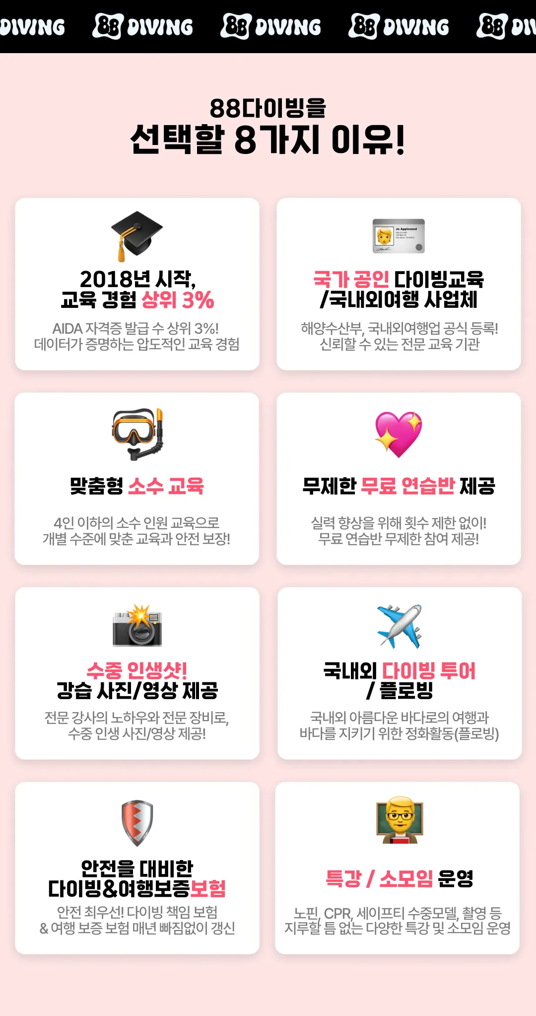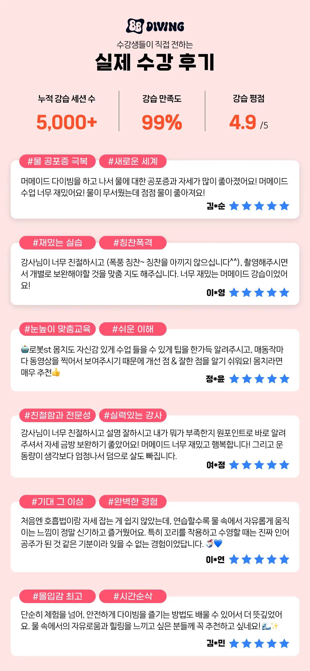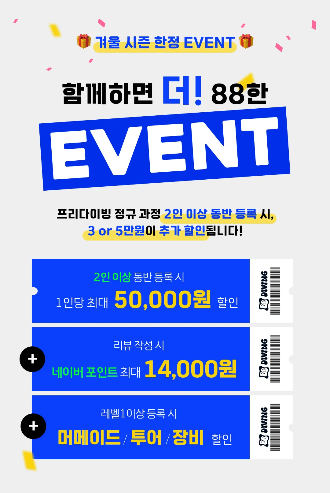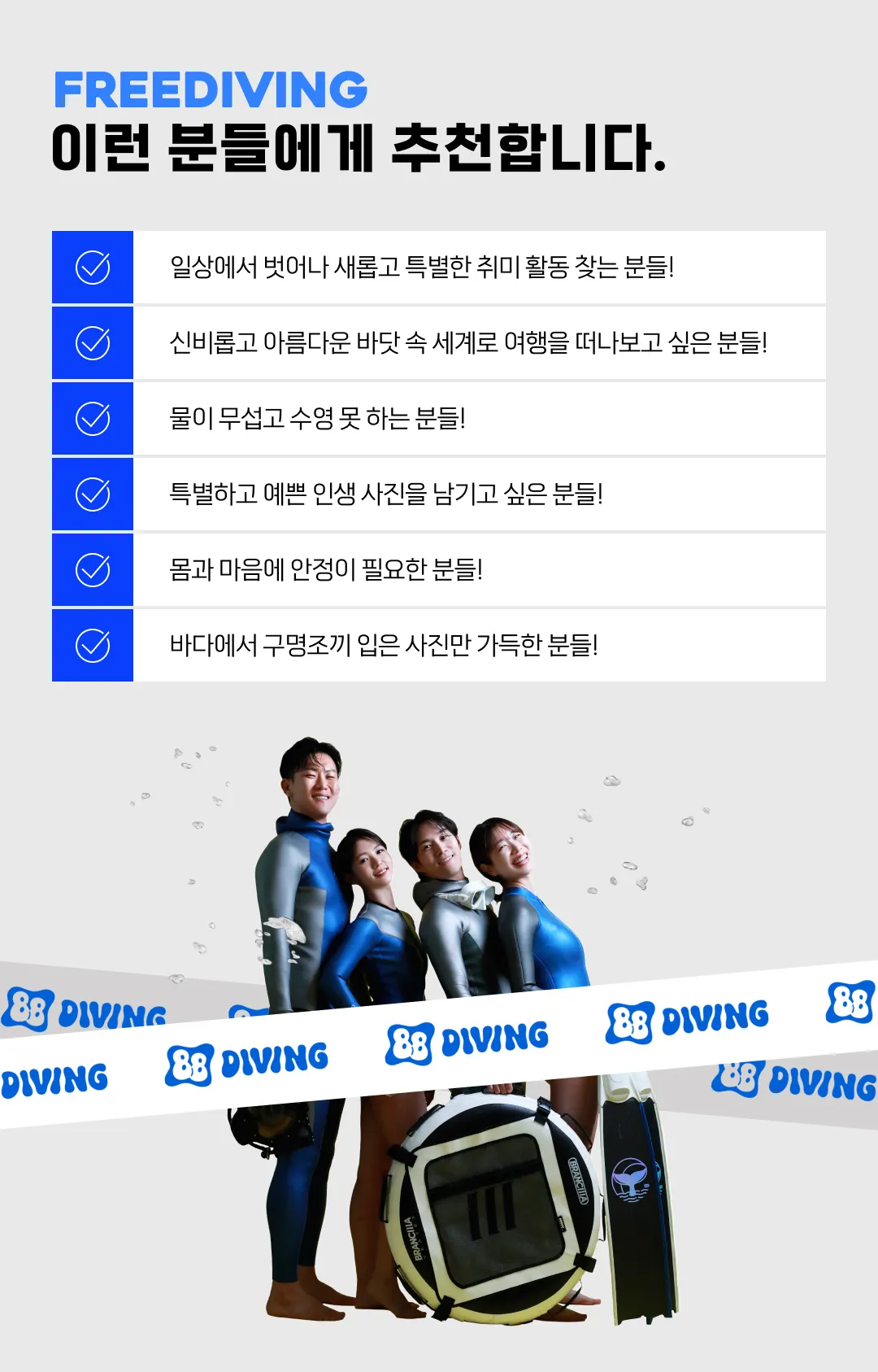 프리다이빙 & 머메이드 강사 과정 및 EFR은 별도 문의주세요.