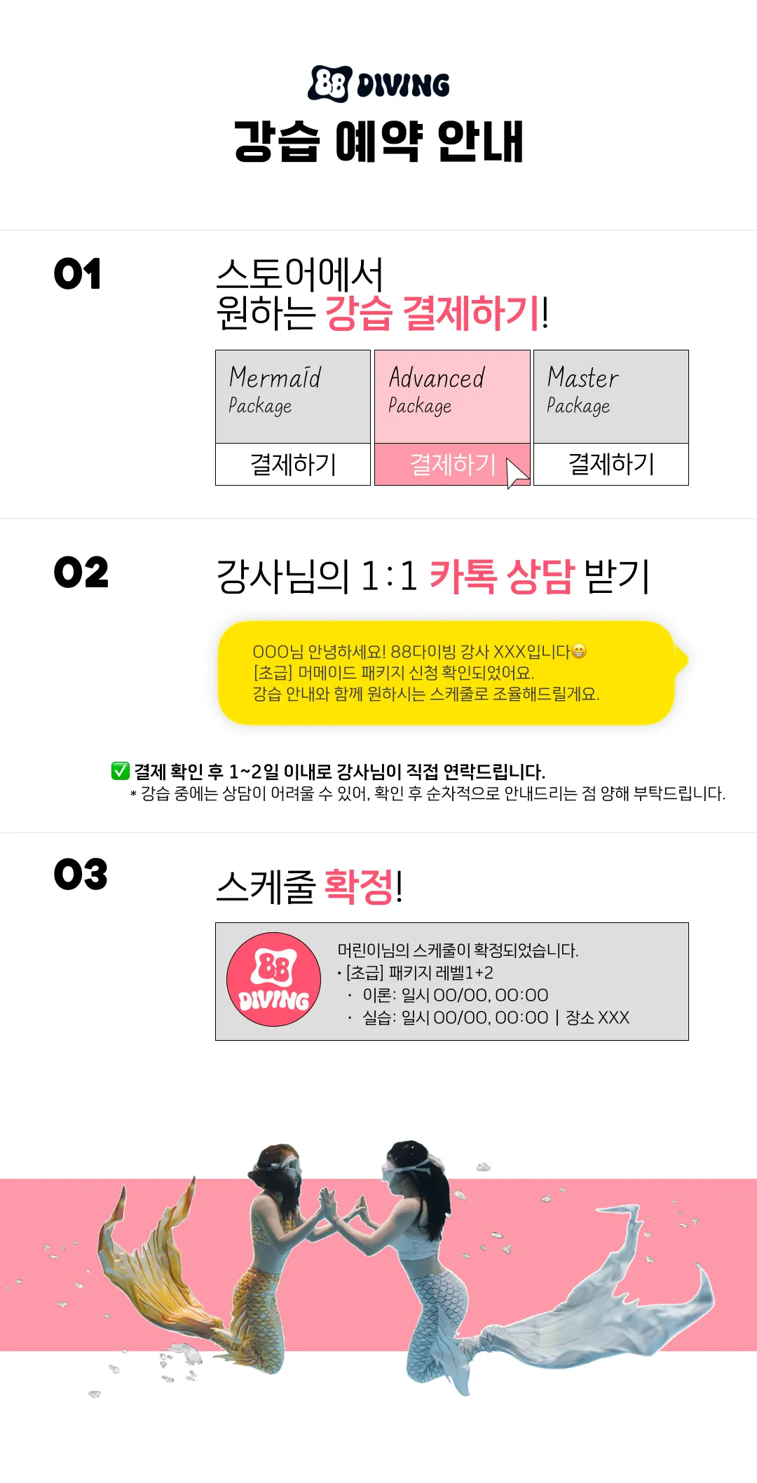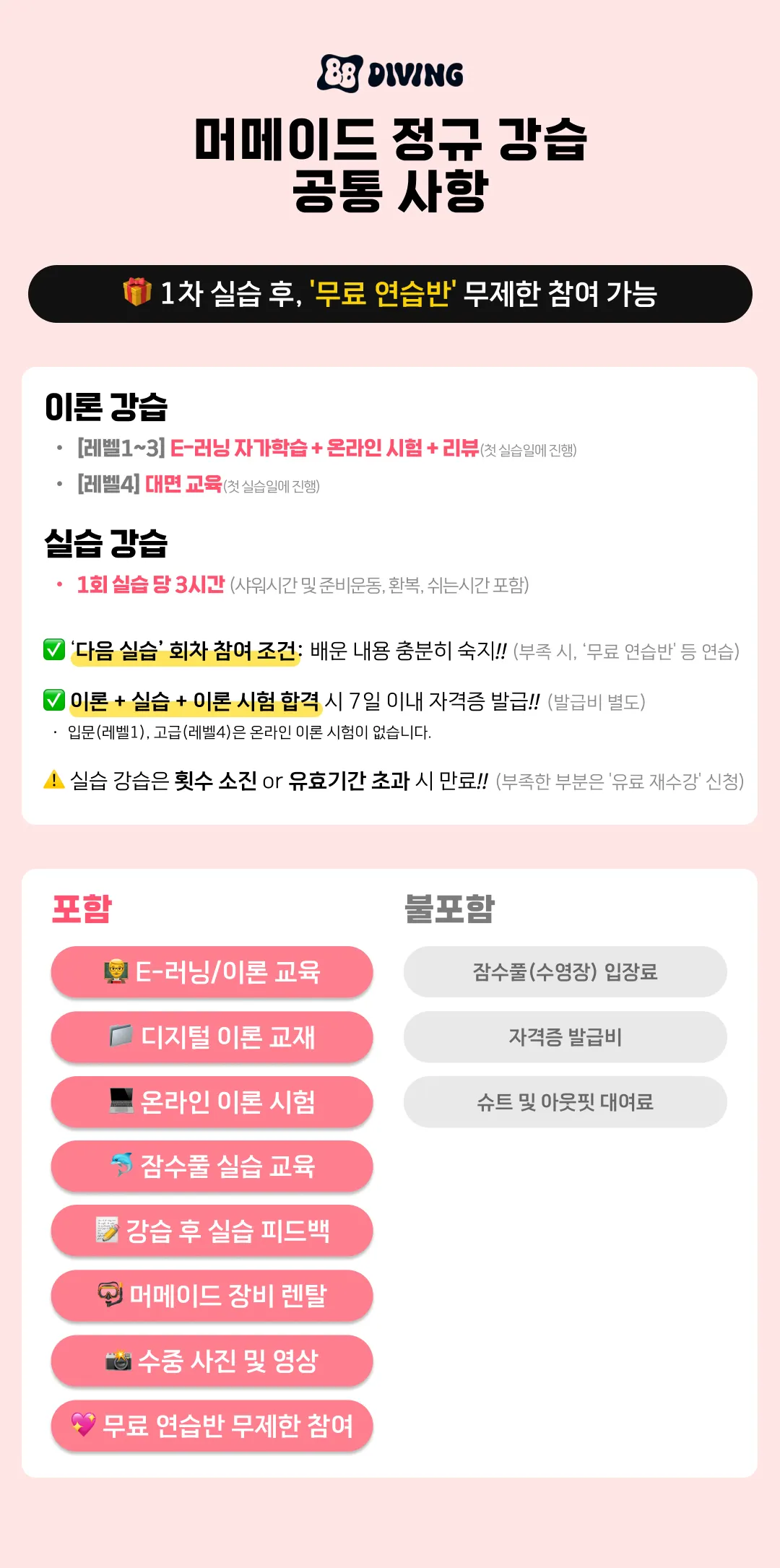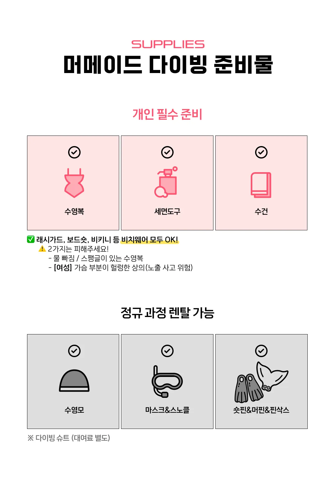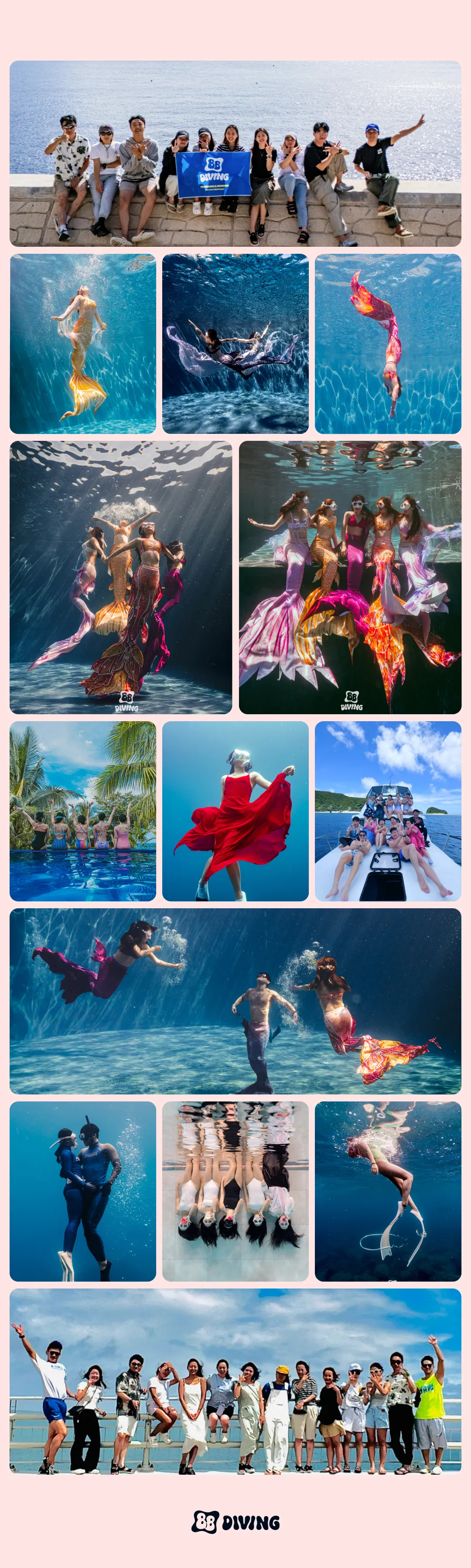 수면 아래에서의 우아한 인어의 움직임을 배우며 즐겁고 독특한 수중 경험을 쌓게 돼요. 즐겁게 놀면서 수중 포징을 배우는데 도움이 돼요.
